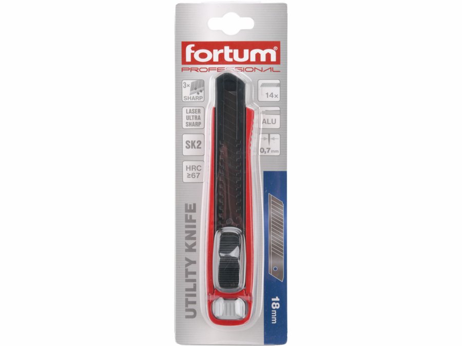 Nôž univerzálny olamovací, 18mm, hliníkový, Auto-lock, FORTUM