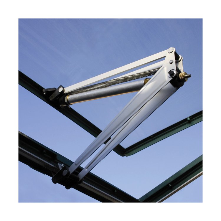 Bezúdržbový systém, který nevyžaduje žádné baterie, pracuje na bázi roztažnosti látky podobné parafinu, takže z něho nemůže uniknout plyn, jako třeba z plynových vzpěr. Systém automatické ventilace slouží k zamezení přehřátí nebo naopak podchlazení rostlin a to i v situaci, že nejste doma. Systém začíná automaticky otevírat střešní okno při teplotách kolem 12-15°C. Plného otevření se potom docílí při teplotách okolo 30°C. Při ochlazení systém okno automaticky uzavře. Celý systém je velmi robustní s velmi dlouhou životností. V případě potřeby se dá ovládat i manuálně. Výhodou automatického ovládání je i to, že teplota je regulována průběžně po celý den (i když jste v práci) a nedochází k situacím, že je skleník přehřátý a je ho nutné rychle odvětrat. Otvírač je určen pouze pro skleníky značky Palram.