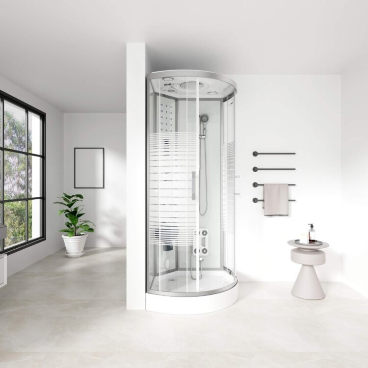 Vynovená parná kabína (so saunou) "Biela perla 90x90cm" vďaka svojim funkciám predstavuje absolútnu wellness oázu v kúpeľni. Dojíma pôvabným dizajnom a špičkovou kvalitou. . Rozmer 900x900x2200mm.