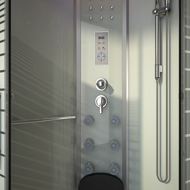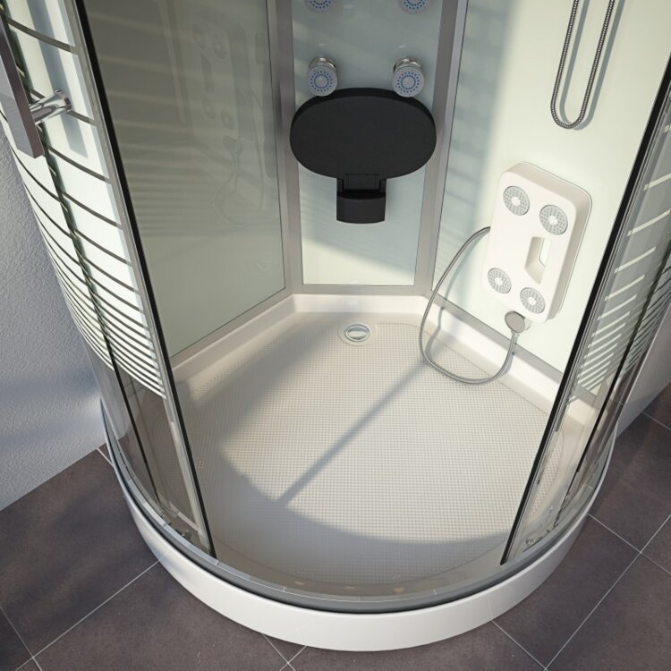 Popis: Táto dizajnová parná sprchová kabína je skutočným multifunkčným a priestorovo úsporným zázrakom. Napríklad po náročnom dni v práci sa zbavte stresu príjemnou parnou saunou (nastaviteľná do 40 °C), ktorá vás zaručene zapotí. Voliteľne máte možnosť zakomponovať vôňu nebeskej intenzity (napr. eukalyptus, mäta a mnoho ďalších). Naša „séria PERLA“ ponúka aj možnosť dažďovej sprchy, kde voda steká ako vlažný tropický dážď z neuveriteľných 126 trysiek v strope. Relaxačná masáž chrbta (6 hydrotrysiek) pri počúvaní vašej obľúbenej rozhlasovej stanice je obľúbená u mnohých zákazníkov. Samozrejme je možné aj bežné použitie s ručnou sprchou, ktorú je možné nastaviť pomocou priloženej sprchovej tyče. 15 modrých LED diód v stredovom paneli dotvára príjemný pocit. Hlasitosť a výber stanice môžete plynule nastavovať pomocou integrovaného počítačového displeja. Výklopné sedadlo v stredovom paneli (max. nosnosť cca 100 kg) a protišmyková konštrukcia na dne vane zaisťujú bezpečné používanie tohto sprchovacieho kúta. 5 mm ESG celosklenie všetkých komponentov predstavuje naše trvalo vysoké štandardy kvality. Ultramoderná čiastočne saténová povrchová úprava vytvára diskrétnosť aj priesvitnosť. Výškovo nastaviteľné nožičky sprchovej vaničky, ktoré sa dajú prispôsobiť takmer akémukoľvek povrchu, sú ďalším vynikajúcim prvkom, ktorý odlišuje túto sprchu od ostatných. Celkovo vzaté, box Perla je veľmi dobrá parná sprchová kabína s vynikajúcim pomerom cena/výkon!