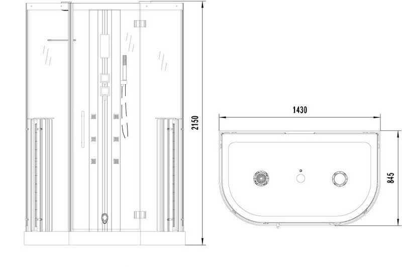 6 masážne trysky, dážďová sprcha a ručná sprcha