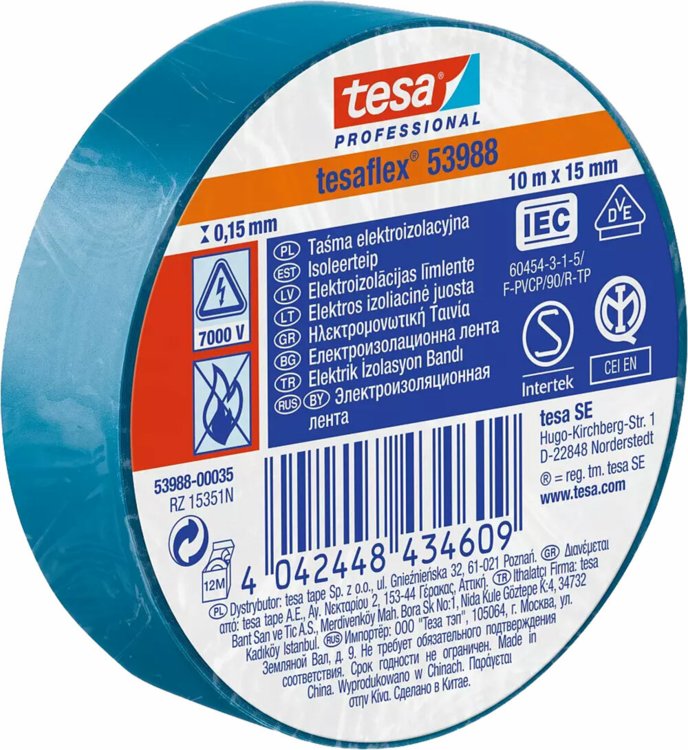 Páska 53988 elektroizolačná modrá 15mm x 10m, Tesa