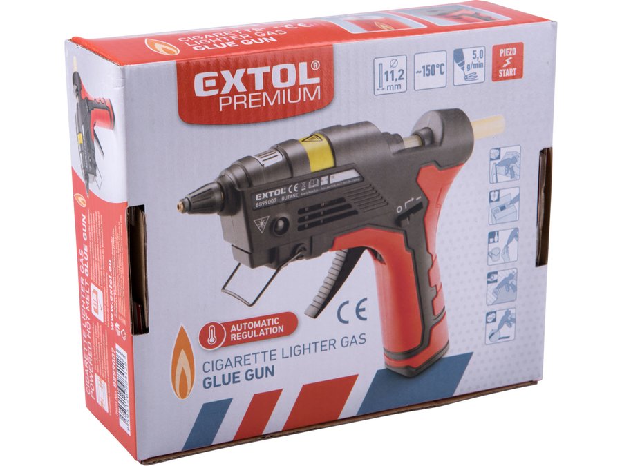 Plynová lepiaca tavná pištoľ je určená na roztavenie a nanášanie tavného lepidla za účelom rýchleho zlepenie papiera, korku, dreva, kože, textílie, umelej hmoty, keramiky atď. Lepiaca pištoľ má veľmi úsporne navrhnuté nahrievacie teleso, ktoré funguje podobne ako pri elektrických lepiacich tavných pištoliach . Po zahriatí pištole na prevádzkovú teplotu, zhasne hlavný plameň a zostane zapnutý iba malý pilotný plamienok. Akonáhle teplota klesne pod určitú hodnotu, zapáli sa automaticky opäť hlavný plameň a nahreje pištoľ na prevádzkovú teplotu. Ako palivo používa pištoľ plyn do zapaľovačov, ktorý je ľahko dostupný napr. v novinových stánkoch. Pištoľ je vybavená plniacim ventilom tretej generácie, ktorý zabezpečuje ľahké plnenie bez zbytočných strát. Neprítomnosť napájacieho kábla zvyšuje komfort pri používaní a slobodu pri pohybe.