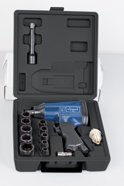sada pneumatického utahováku a příslušenství v praktickém kufru ideální pro rychlé utahování či povolování závitových spojů, výměně kol, spojování ocelových i dřevěných konstrukcí šrouby apod. vysoká rychlost utahování díky 7000 ot./min. pracovní utahovací moment: 312 Nm maximální tlak 6,3 bar průměrná spotřeba vzduchu 141 l/min. upínací čtyřhran: 1/2" max. průměr šroubu: 14 komfortní jednoruční přepínání pravého/levého chodu příslušenství: 10 x 1/2" nástrčných hlavic, prodlužovací nástavec, maznička, olej, imbusový klíč, konektor pro rychlospojku, olejový přimazávač vzduchu