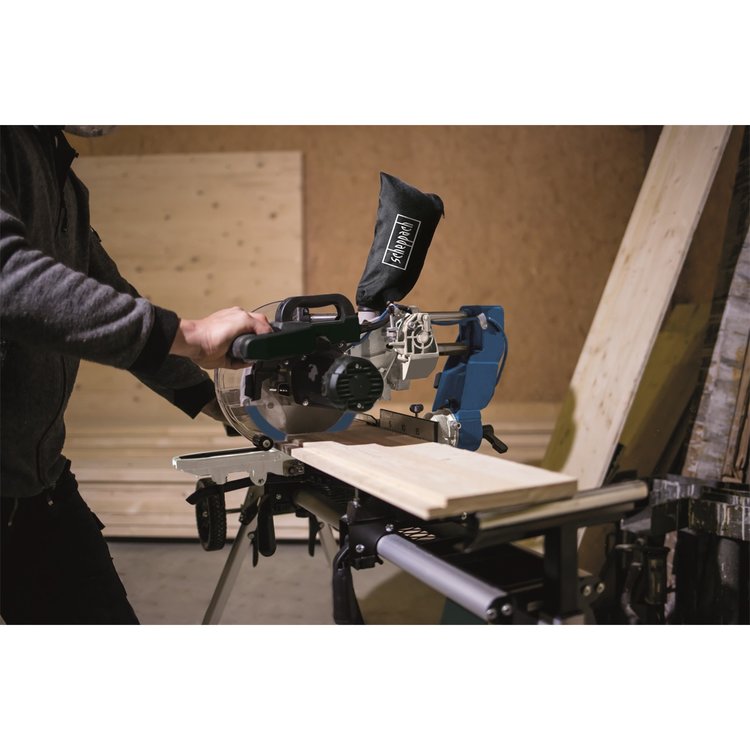 Scheppach HM 90 SL je skvěle vybavená, výkonná pokosová pila, která je postavená na úplně nové základně s pevnými vodícími tyčemi. To znamená, že i když používáte funkci potahu, pila nepotřebuje žádný prostor za sebou, ale může být přistavena přímo u zdi. To se hodí například při práci ve stísněných prostorech, v menších dílnách nebo tam, kde Vám šíře pracovního stolu nedovoluje ukotvit stroj dostatečně daleko od stěny a funkce potahu by se nedala využít. Pila je postavena na velmi pevném rámu z lehké slitiny hliníku, který je při příznivé hmotnosti nejenom velmi stabilní, ale zaručuje rovněž dostatečně tuhý základ, nutný pro provádění přesných řezů. Standardně je stroj osazen kvalitním kotoučem s 60 zuby z tvrdokovu, který, spolu s vysokou řeznou rychlostí, zajistí hladký a precizní řez bez otřepů. Výhodou pro řezání v tvrdších materiálech je i velmi silný motor o výkonu 2200 W a velký prořez 65 mm. Pila je vybavena laserem, pro přesnou kontrolu řezu, LED osvětlením pro dokonalé osvětlení pracovní plochy, přehledným pravítkem, dvěma rozšiřovacími stolky, rychloupínacím systémem pro nastavení úhlu řezu, prachovým sáčkem, svorkou, extra dlouhou přívodní šňůrou a druhým kotoučem 48 zubů zdarma.