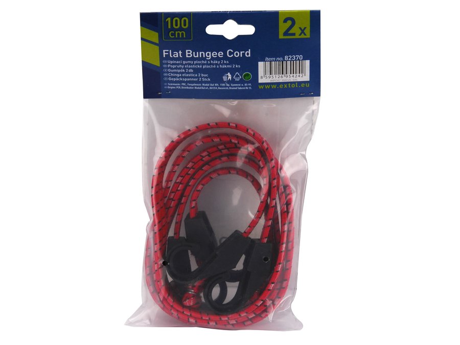 Popruh elastický plochý, 100cm x 14mm, 2ks, plastové háky, EXTOL CRAFT