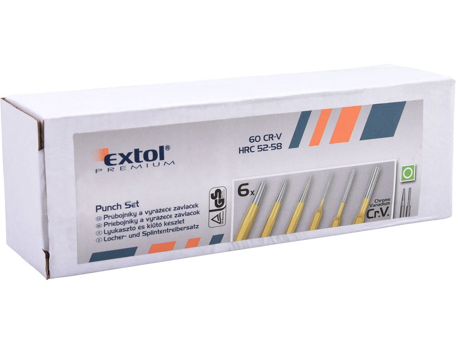 Priebojníky a vyrážače závlačiek, 6-dielna sada, plechové puzdro, EXTOL PREMIUM