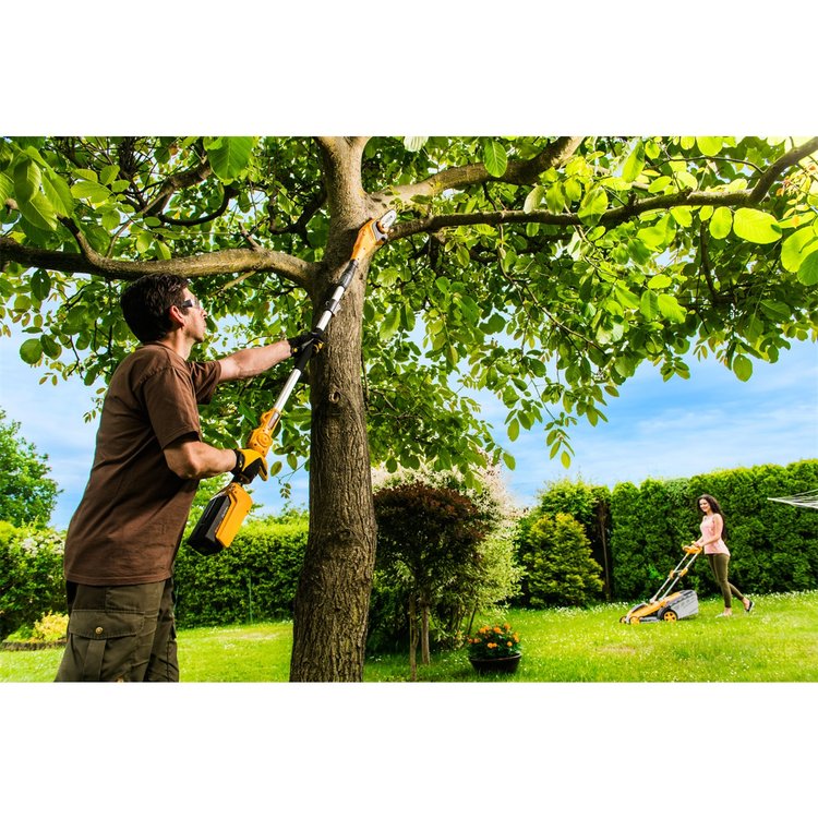 kvalitní a výkonný elektromotor PowerBrush nejpohodlnější cesta údržby vaší zahrady - vysoký výkon, snadné startování, tichý chod, žádné emise ani otravný kabel, žádný spotřební materiál (olej, benzín, svíčky, filtry apod.) tenká značková lišta i řetěz Oregon zaručují přesný a čistý řez snadné napínání řetězu otočným knoflíkem bez použití nářadí snadná vizuální kontrola stavu oleje ergonomická protiskluzová rukojeť s velkým bezpečnostním spínačem pro pohodlnou práci v rukavicích celková délka 2 m dovoluje řezat i vysoko položené větve vodící tyč z lehké a pevné hliníkové slitiny úchyt na ramenní popruh (popruh je součástí dodávky) baterie v zadní části stroje pro výborné vyvážení stroje možno kombinovat s jakoukoliv baterií a nabíječkou Riwall 2 roky plná záruka na baterii-v případě problému bude automaticky vyměněna za novou stroj bezpečně prošel všemi zkouškami německé prestižní zkušební organizace TÜV baterie a nabíječka nejsou součástí dodávky