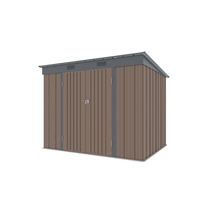 ZAHRADNÍ DOMEK KOVOVÝ 2,4 X 1,8 M S PULTOVOU STŘECHOU HNĚDÝ