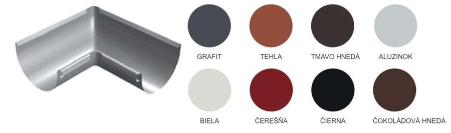 Estetické a funkčné spojenie žľabov v rohoch a kútoch budov zabezpečujú žľabové rohy . Naša ponuka zahŕňa rohy: vnútorný so štandardným uhlom 90° ako aj vo verzii s uhlom 135°.