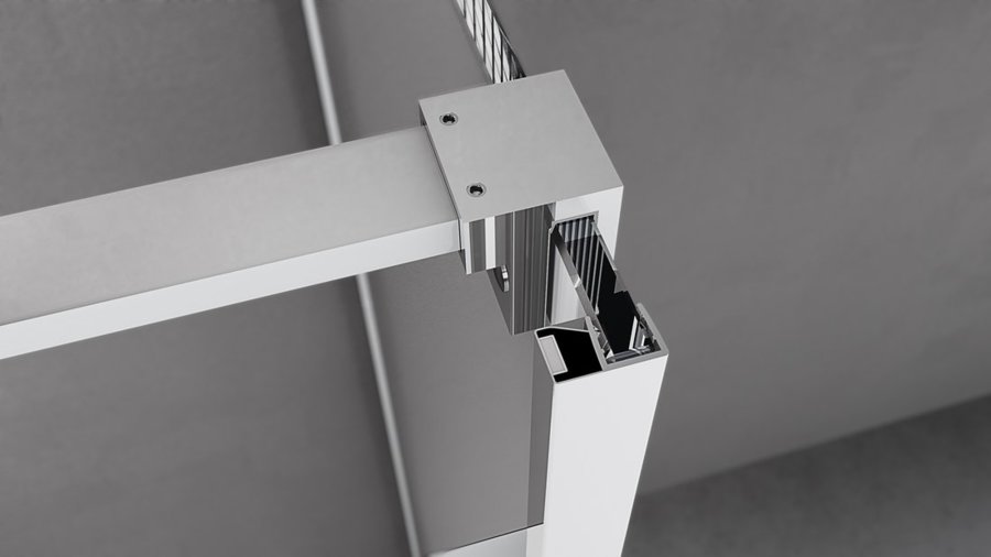 Ochranu proti pretečeniu vody u bezrámových zásten zaisťuje nízka prietoková lišta, ktorá dotvára čistý vzhľad zásteny. Bezrámové zásteny tak pôsobia sviežim elegantným dojmom.