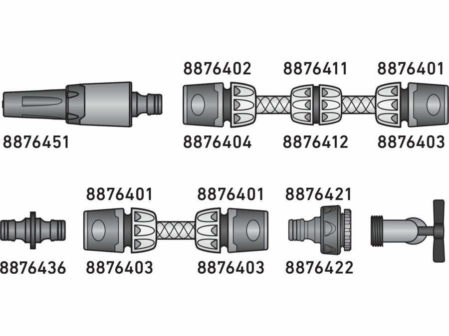 • STOP ventil zabraňuje prietoku vody v prípade, že k hadici nie je pripojený ďalší komponent (STOP ventil len pri spojkách 8876402 a 8876404)