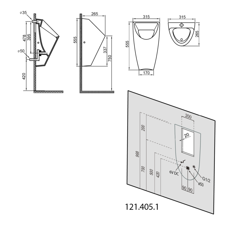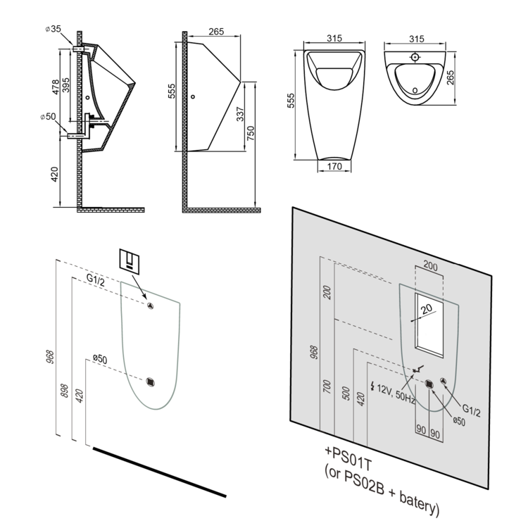 Pre skryté prepojenie prívodu k urinálu odporúčame použiť prepojovaciu trubičku priemer 12mm, kompatibilnú do manžety pisoáru a so závitom ½″ k nástenke.