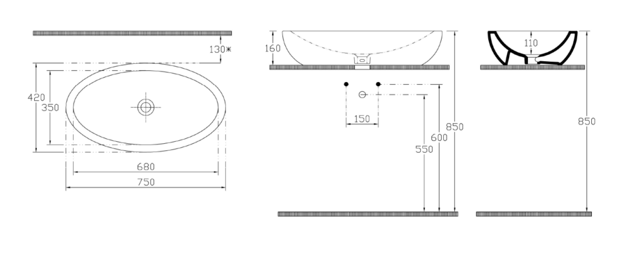 | Typ umývadla | Umývadlo na dosku |