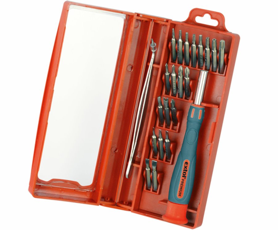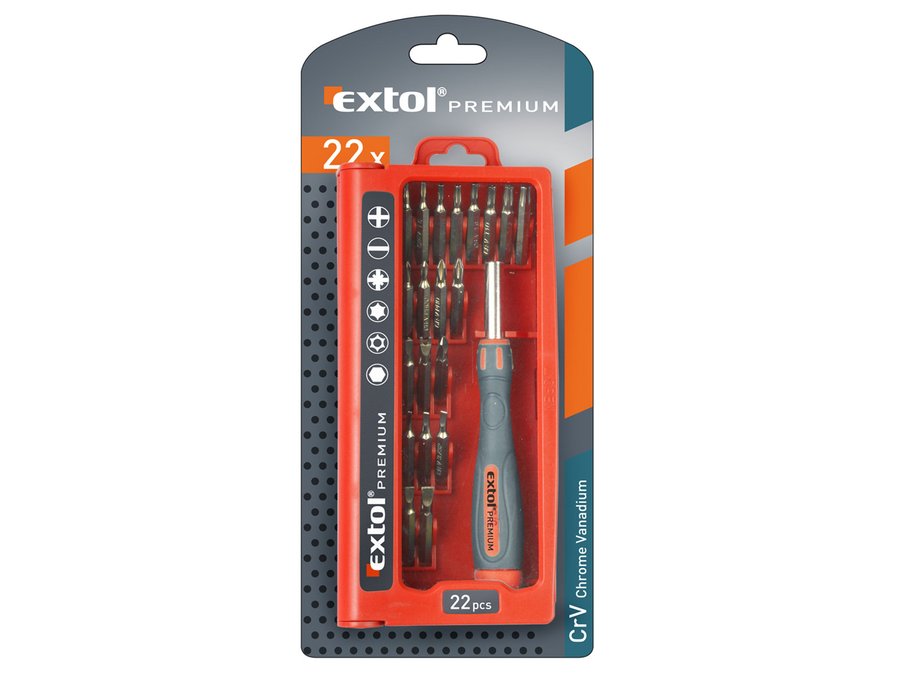 Skrutkovač na bity hodinársky, magnetický, 22-dielna sada, CrV, EXTOL PREMIUM