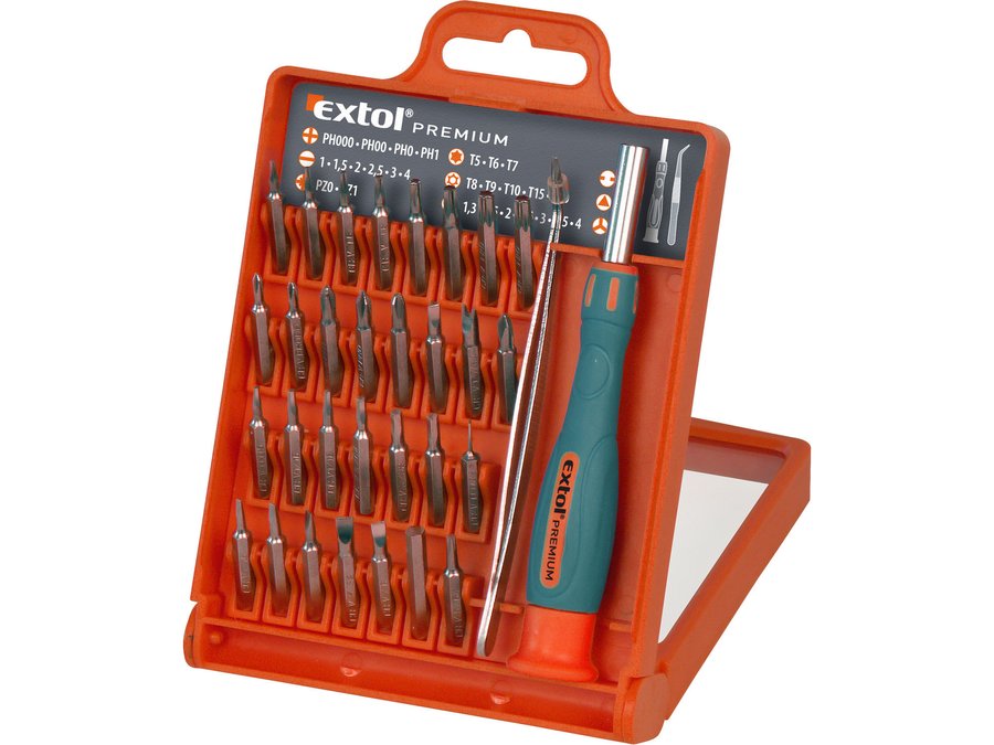 Skrutkovač hodinársky 115mm, 32-dielna sada, magnetický držiak na bity, Cr-V
