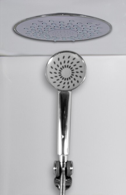 V zadnom laminátovom paneli je umiestnená batéria s ručnou sprchou.