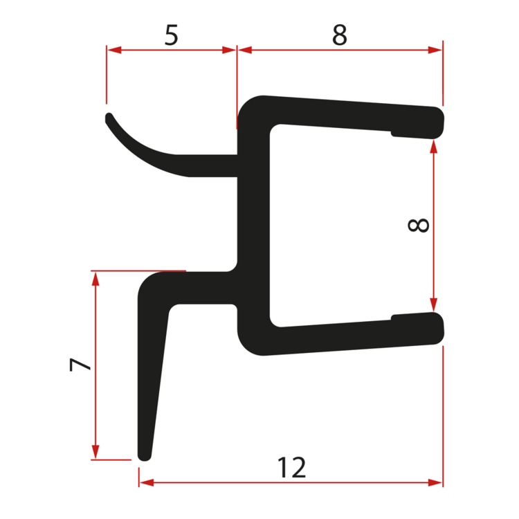 Spodné tesnenie na dvere, sklo 8mm, 1000mm, čierna