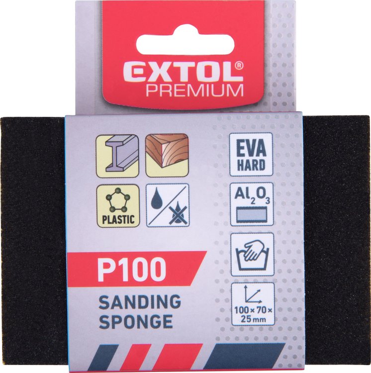 • všetky štyri strany sú pokryté korundovým zrnom, čo umožňuje pohodlne opracovávať i rohy a kúty, po zanesení prachom je možné špongiu umyť a znovu použiť
