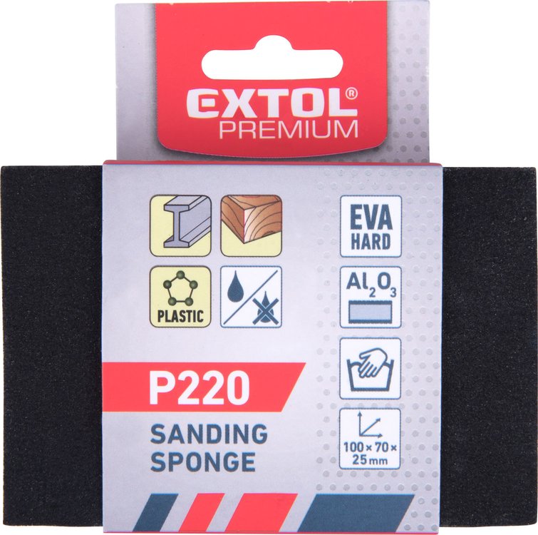 Špongia brúsna 4-stranná, 100x70x25mm, P220, EVA, EXTOL PREMIUM