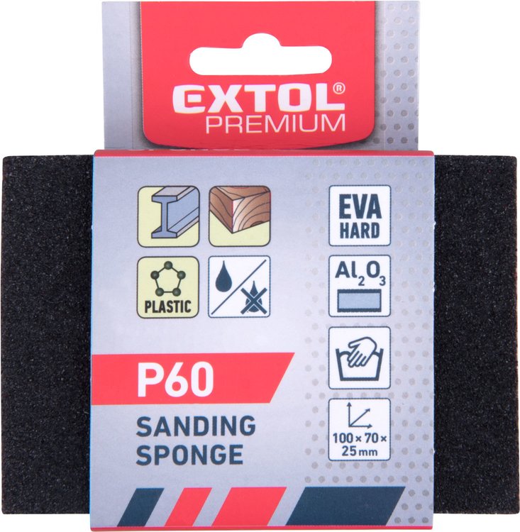 • všetky štyri strany sú pokryté korundovým zrnom, čo umožňuje pohodlne opracovávať i rohy a kúty, po zanesení prachom je možné špongiu umyť a znovu použiť