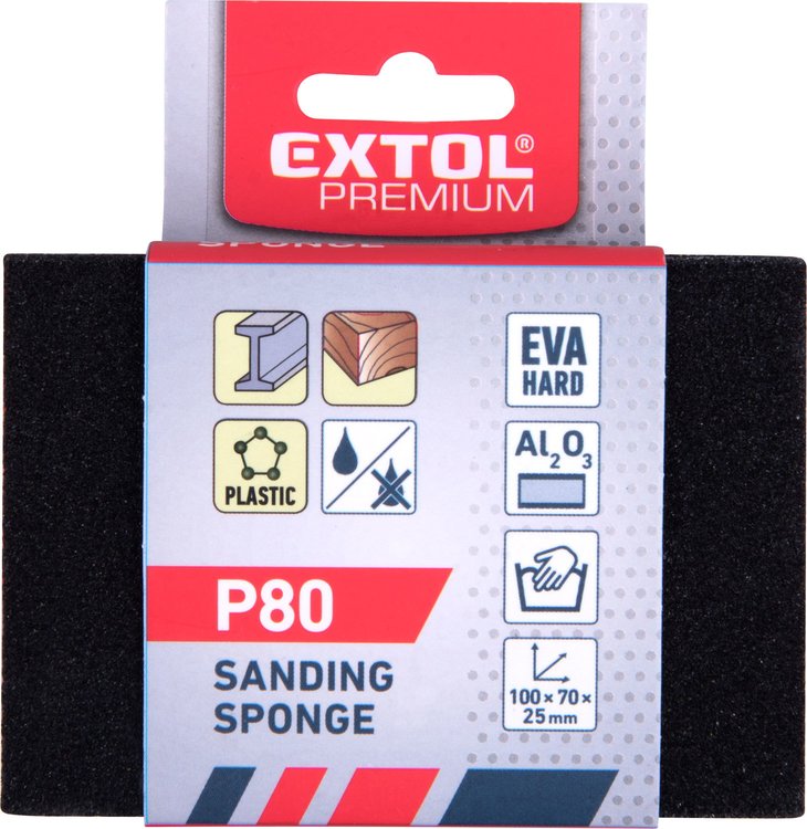 Špongia brúsna 4-stranná, 100x70x25mm, P80, EVA, EXTOL PREMIUM
