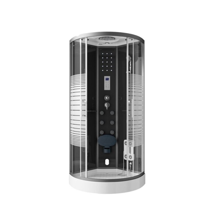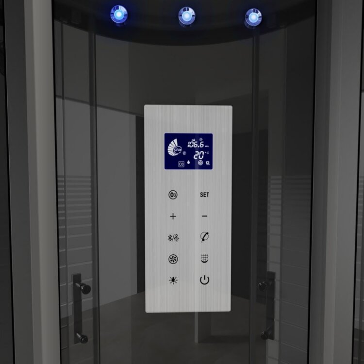 Popis: Táto dizajnová parná sprchová kabína je skutočným multifunkčným a priestorovo úsporným zázrakom. Napríklad po náročnom dni v práci sa zbavte stresu príjemnou parnou saunou (nastaviteľná do 40 °C), ktorá vás zaručene zapotí. Voliteľne máte možnosť zakomponovať vôňu nebeskej intenzity (napr. eukalyptus, mäta a mnoho ďalších). Naša „séria PERLA“ ponúka aj možnosť dažďovej sprchy, kde voda steká ako vlažný tropický dážď z neuveriteľných 126 trysiek v strope. Relaxačná masáž chrbta (6 hydrotrysiek) pri počúvaní vašej obľúbenej rozhlasovej stanice je obľúbená u mnohých zákazníkov. Samozrejme je možné aj bežné použitie s ručnou sprchou, ktorú je možné nastaviť pomocou priloženej sprchovej tyče. 15 modrých LED diód v stredovom paneli dotvára príjemný pocit. Hlasitosť a výber stanice môžete plynule nastavovať pomocou integrovaného počítačového displeja. Výklopné sedadlo v stredovom paneli (max. nosnosť cca 100 kg) a protišmyková konštrukcia na dne vane zaisťujú bezpečné používanie tohto sprchovacieho kúta. 5 mm ESG celosklenie všetkých komponentov predstavuje naše trvalo vysoké štandardy kvality. Ultramoderná čiastočne saténová povrchová úprava vytvára diskrétnosť aj priesvitnosť. Výškovo nastaviteľné nožičky sprchovej vaničky, ktoré sa dajú prispôsobiť takmer akémukoľvek povrchu, sú ďalším vynikajúcim prvkom, ktorý odlišuje túto sprchu od ostatných. Celkovo vzaté, box Perla je veľmi dobrá parná sprchová kabína s vynikajúcim pomerom cena/výkon!