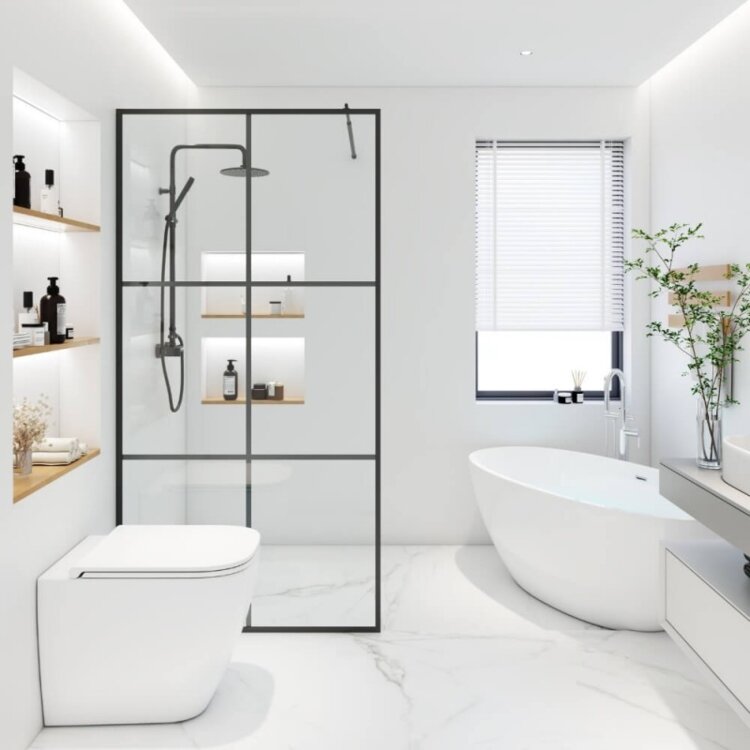 Ponorte sa do prvotriedneho sprchovacieho zážitku: Náša sprchová zástena Walk-in so 6 mriežkami je dokonalá kombinácia elegancie a funkčnosti. S našimi sprchovými zástenami sme nastavili nové štandardy z hľadiska estetiky a kvality. Rám v elegantnej čiernej farbe dodá vašej kúpeľni nádych jedinečnosti a harmónie.