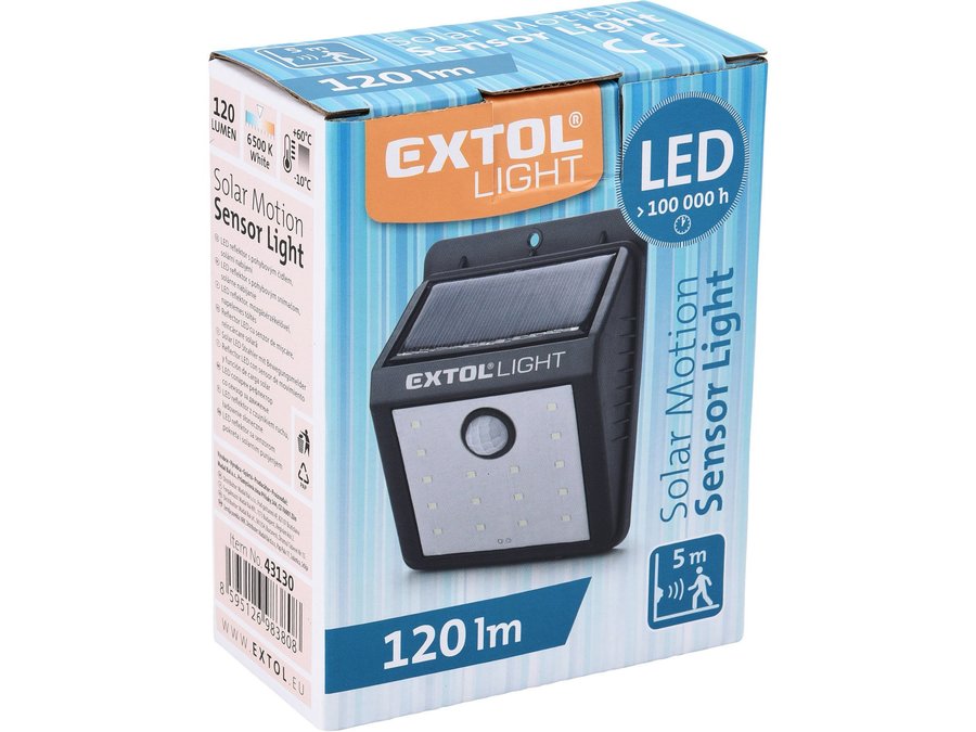 Svietidlo LED solárne s pohybovým senzorom, 16xLED, 120 lm, IPX4, EXTOL LIGHT