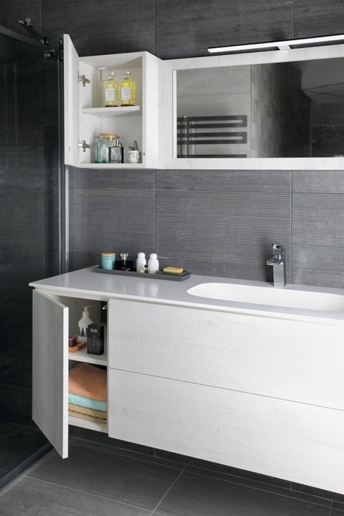 Nábytok je vybavený pojazdy zásuviek s pomalým dojazdom a systémom automatického dovretí zásuviek. Už žiadne hlučné zatváranie.