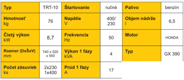 Trojfázová elektrocentrála vhodná ako prenosný zdroj elektrickej energie na stavbách, ale aj na miestach, kde nie je dostupná rozvodná sieť. Taktiež pre zváracie invertory s výkonom do 200 A.