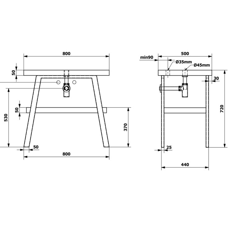 Stolík sa skladá z oceľovej podpery TWIGA, hornej dosky AVICE s hĺbkou 50 cm a spodnej dosky (police) AVICE s hĺbkou 39 cm. Stolíky s rozmermi 110 až 130 cm je možné doplniť o zásuvku.