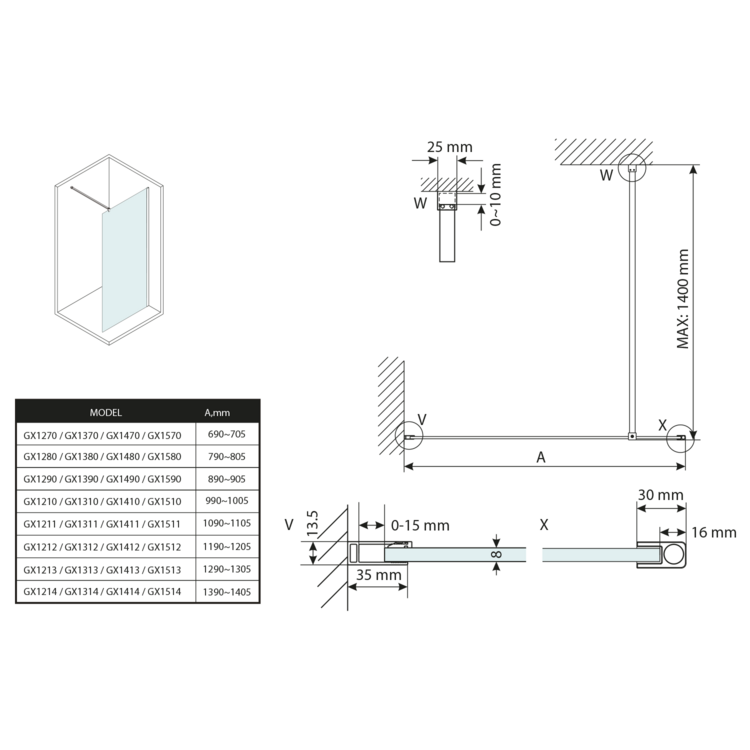 | Hrúbka skla | 8 mm |