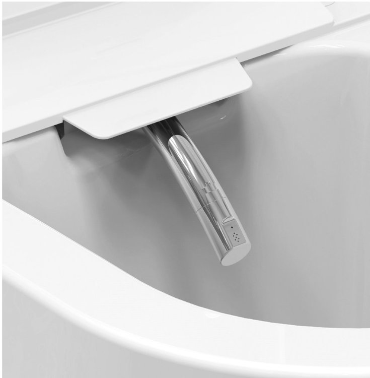 Závesná toaleta VeenClean ponúka nový komfort hygieny. Po použití toalety sa na povel vysunie oplachová tryska s možnosťou nastavenia tlaku a teploty vody.