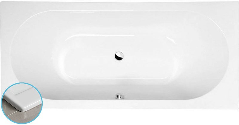 Vaňa s pohodlne tvarovanými stenami na opretie chrbta na oboch stranách a odtokom umiestneným uprostred.