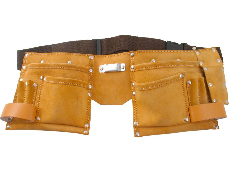 Vrecko na náradie kožené, dvojdielne, 12 vreciek, s opaskom, plastová spona