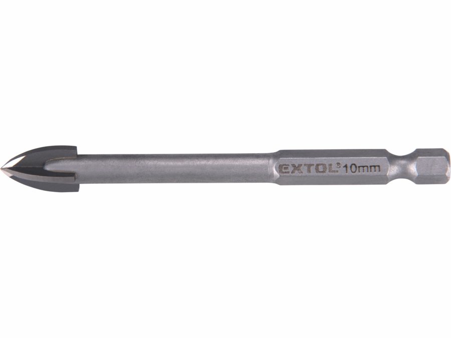 • vrták so štvorbritým karbidový hrotom slúži na vŕtanie dier do rôznych stavebných materiálov ako napr. dlažba, obklad, keramika, sklo a pod.