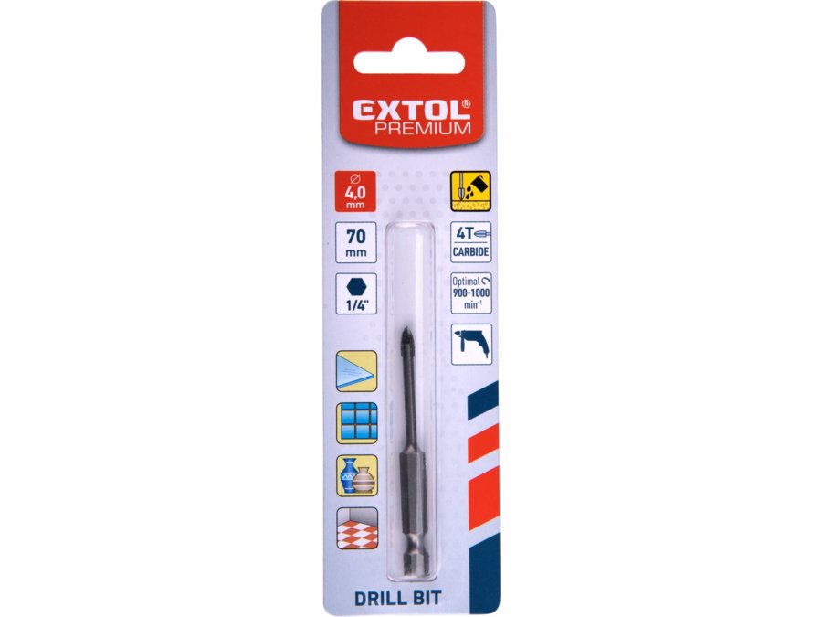 Vrták do skla a keramiky 4mm, šesťhranná 1/4" stopka, EXTOL PREMIUM