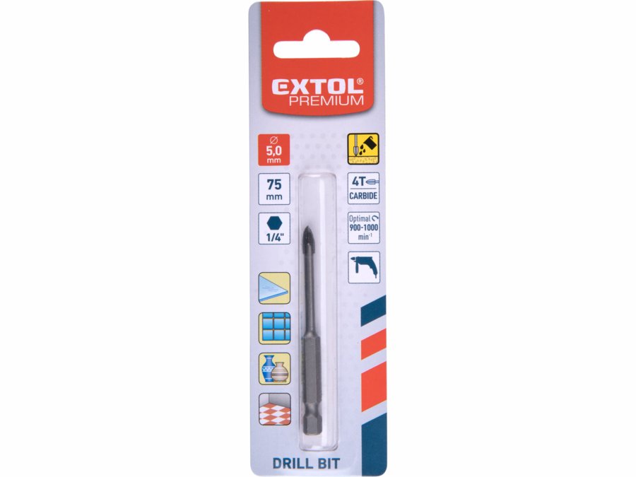 Vrták do skla a keramiky 5mm, šesťhranná 1/4" stopka, EXTOL PREMIUM