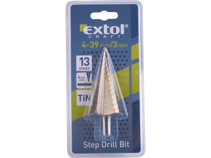 Vrták stupňovitý TiN, ø4-39mm/3mm, 13 otvorov, EXTOL CRAFT