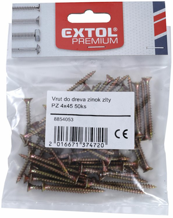 Vrut do dreva tvrdený zinok žltý, 60ks, 5x30, EXTOL PREMIUM