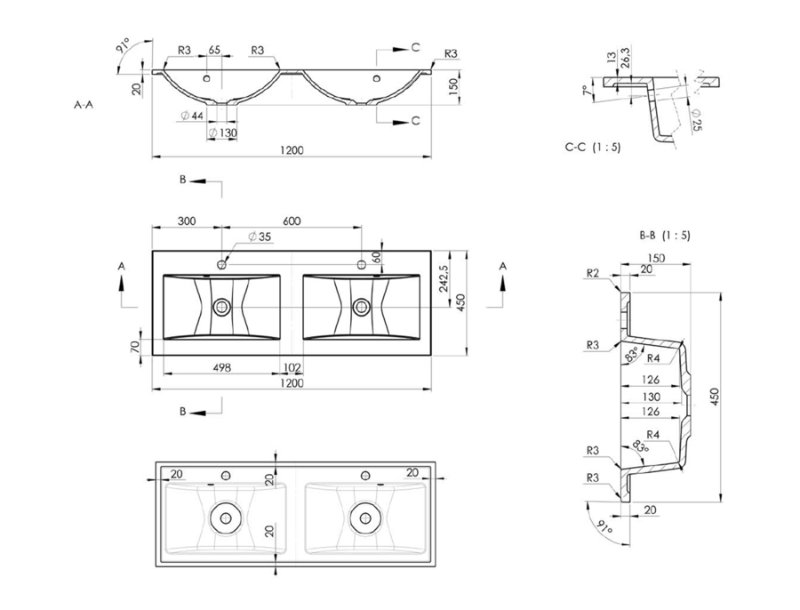 | Typ umývadla | Dvojumývadlo |