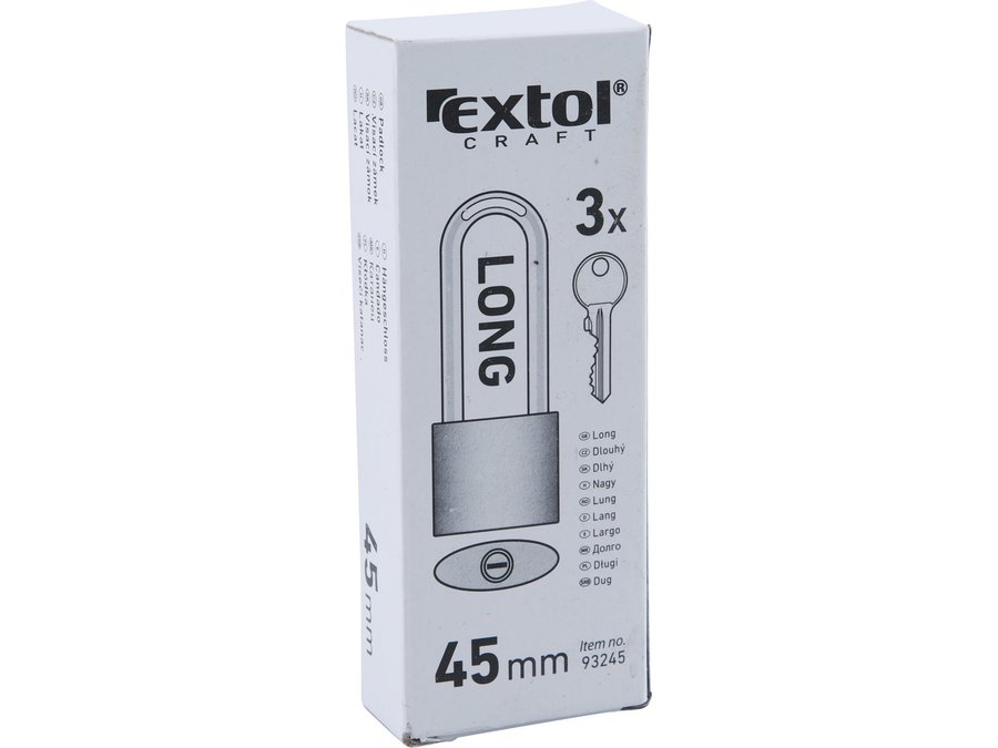 Zámok visací liatinový predĺžený 45mm, 3 kľúče, EXTOL CRAFT