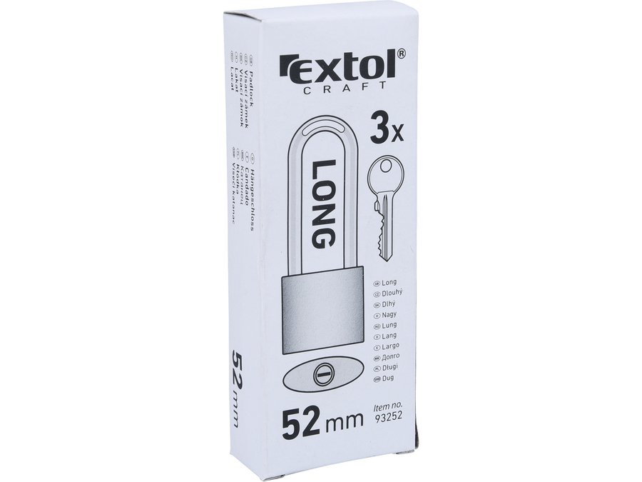 Zámok visací liatinový predĺžený 52mm, 3 kľúče