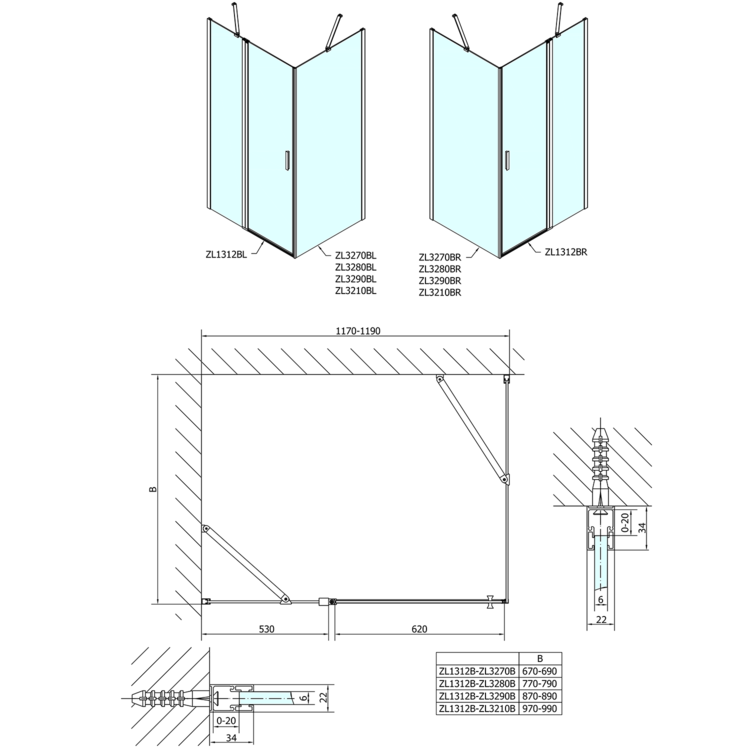 Inštalácia s ľavým alebo pravým otváraním dverí.
