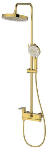 Sprchový stĺp s pákovou batériou, otočným ramienkom, zlato mat